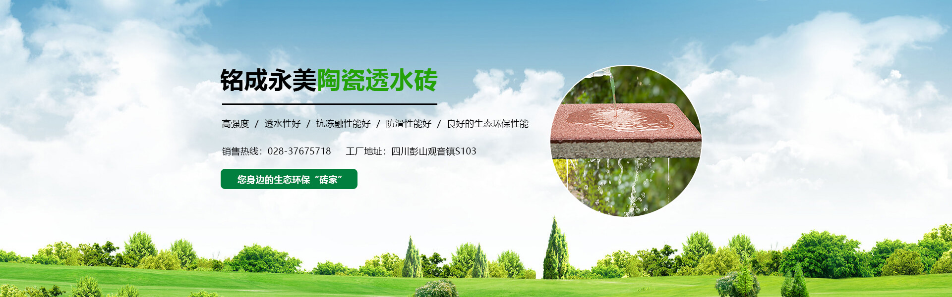 四川銘成永美環保科技有限公司(www_mcotcn_com.qhstyzw.com)是國內非常早研究探索海綿城市的企業之一,公司主導產品:海綿城市鋪路磚家---銘成永美生態陶瓷透水磚已在全國多個重點項目使用。公司透水混凝土、雨水收集利用系統正在全國推廣。公司將整合海綿城市規劃設計、污水處理、污泥利用、環保設備、社會資本等海綿城市相關產業。為解決城市“熱島效應”、地表硬化,防止城市內澇,營造高質量的自然生態環境,改善城市生態平衡而不斷努力!公司將充分利用現有的互聯網資訊平臺,整合生態海綿城市產業鏈,打造集互聯網、科研、生產、銷售、規劃設計、PPP項目營運、工程施工為一體的綜合性環保科技公司,已初步建立覆蓋全國的業務團隊和渠道。